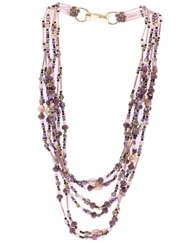 Plated 8-16mm Pearl Half Moon Necklace In Metallic