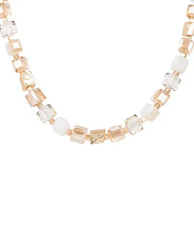 Crystal Beaded Cluster Frontal Necklace In Gold