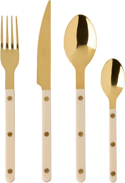 Gold & Off-white Bistrot Cutlery Set, 4 Pcs In Neutral