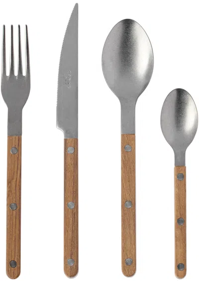 Beige Bistrot Vintage Teak Flatware Set, 24 Pcs In Teak Wood