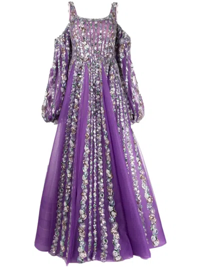 Off-shoulder Beaded Dress With Shoulder Straps In Purple
