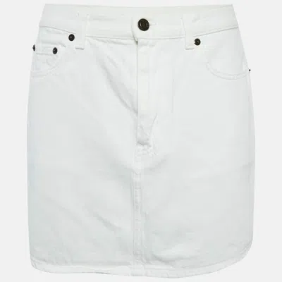 Pre-owned White Denim Distressed Hem Mini Skirt M
