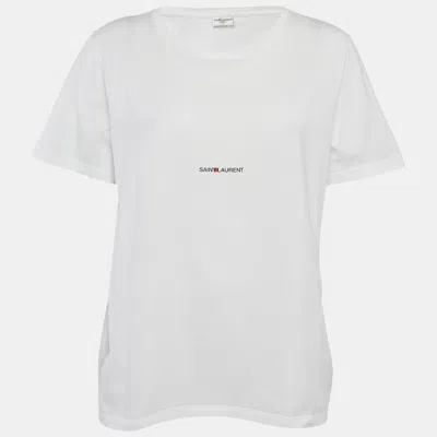 Pre-owned White Logo Print Jersey T-shirt L