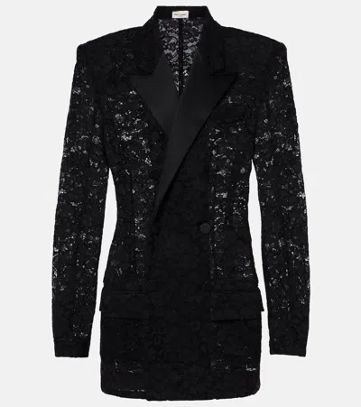 Guipure Lace Tuxedo Jacket Structured Shoulders In Black
