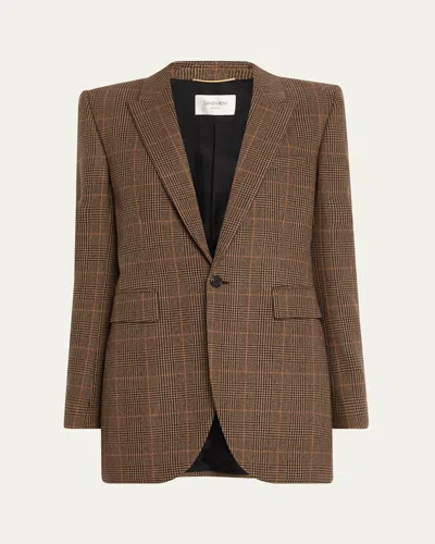 Oversized Check Single-breasted Blazer Jacket In Brown