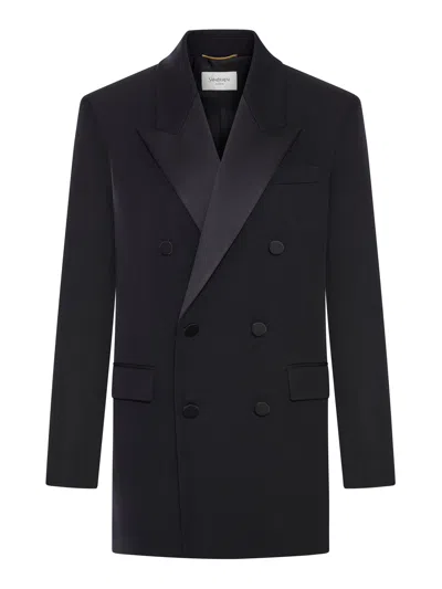 Double-breasted Wool Tuxedo Jacket In Black