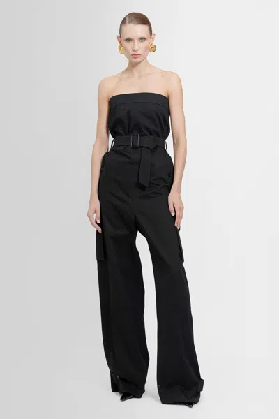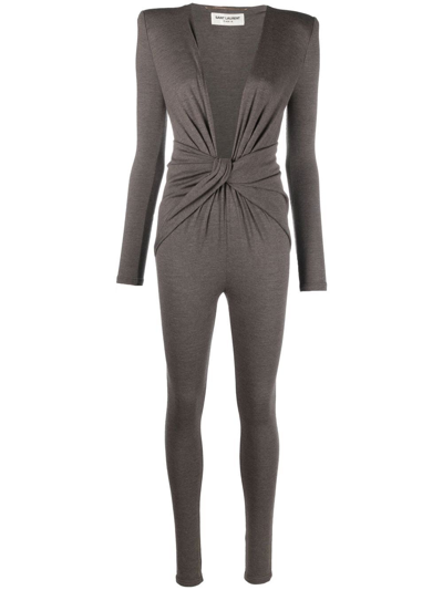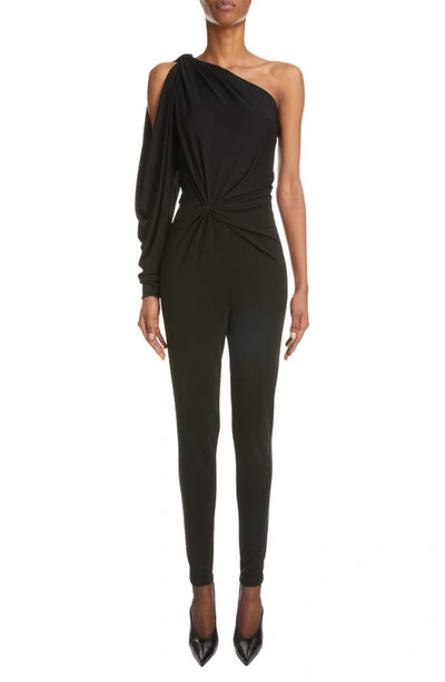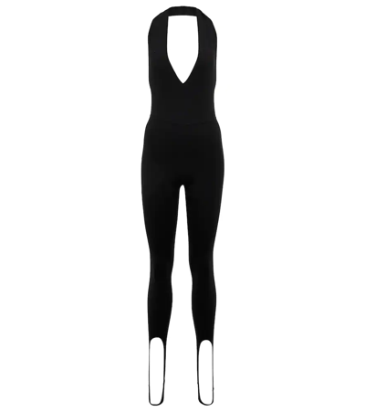 Plunging Halter Stirrup-hem Jumpsuit In Black