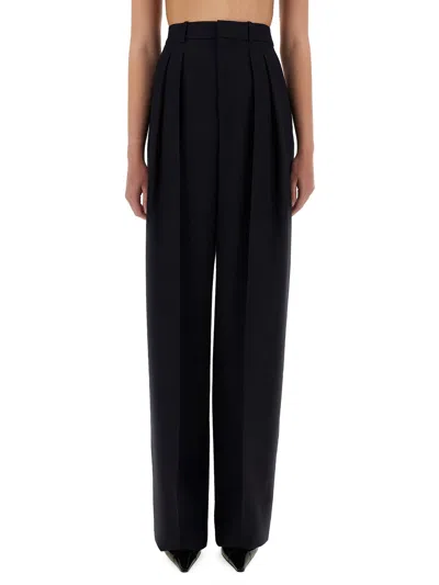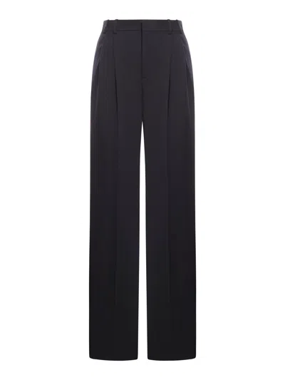 Wide-leg Tailored Pants In Caviar Wool In Brown
