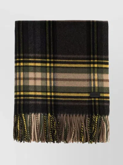 Checkered Silk Blend Scarf With Fringe Trim In Brown