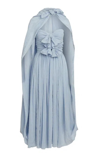 Tiepolo Pleated-capelet Linen Dress In Light Blue
