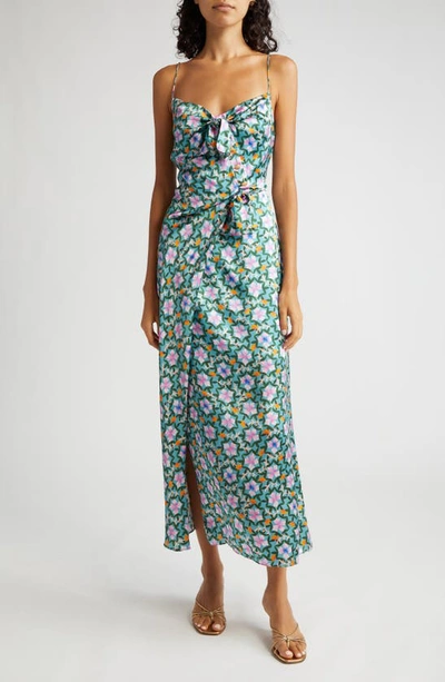 Renee Long Floral Silk Spaghetti-strap Dress In Multi