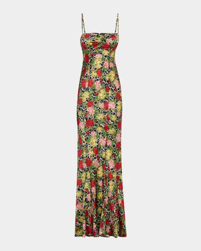 Renee Long Floral Silk Spaghetti-strap Dress In Yellow