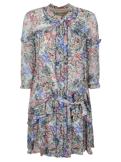 Silk Chiffon Annabelle Shirt Dress With Plant Motif In Multi