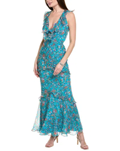 Georgette Silk Maxi Dress In Blue