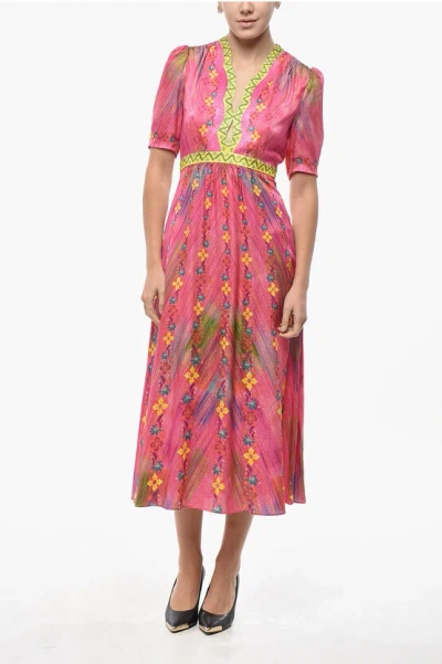 Silk Tabitha Midi Dress With Floral Motif In Multi
