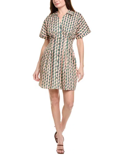 Marlee Embroidered Printed Linen Mini Dress In Green