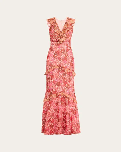 Rita Ruffled Floral-print Metallic Silk-georgette Gown In Multi