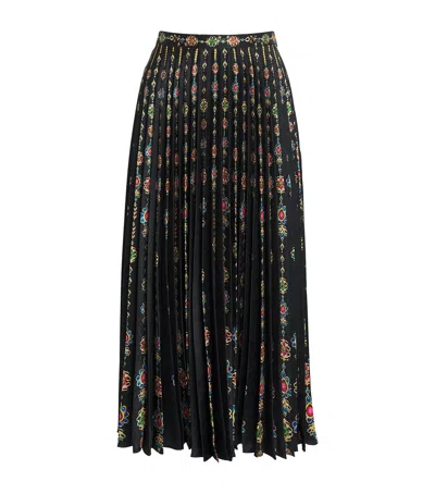 Satin Pendant Stripe Print Pleated Midi Skirt In Black