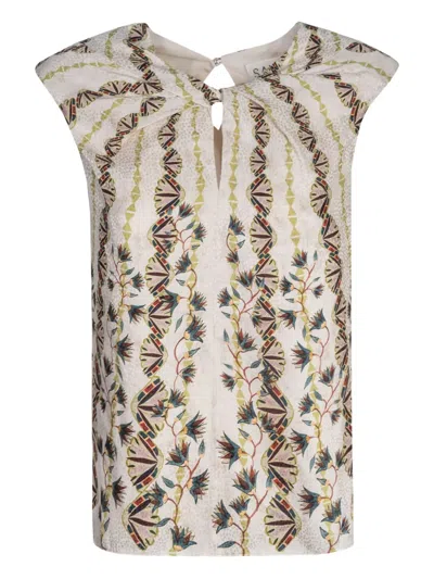 Sleeveless Silk Top Ivory Halter Neckline Tops In Brown
