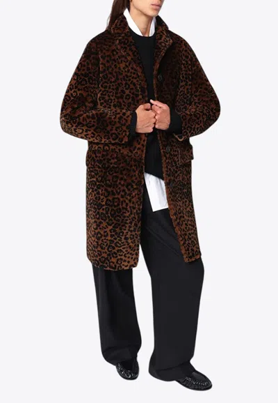 Leopard Print Leather Coat In Brown
