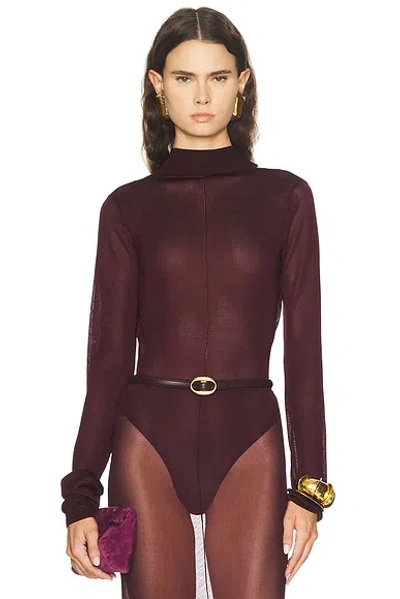 Open Back Knit Bodysuit In Burgundy