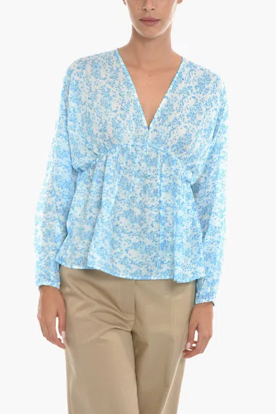 Floral-motif Gertrud Blouse With Puff Sleeve In Blue