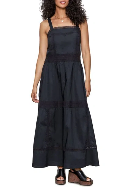 V-neck Twist Cotton Linen Maxi Dress In Black