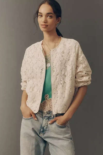 Daily Escape Floral Knit Bomber Jacket In Pink