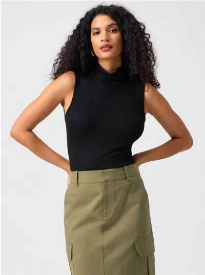Essential Sleeveless Mock Neck Tank Top In Black