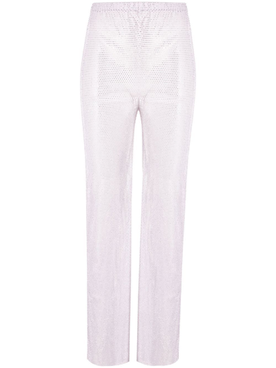 Shimmering High-waisted Straight Leg Trousers In Powder