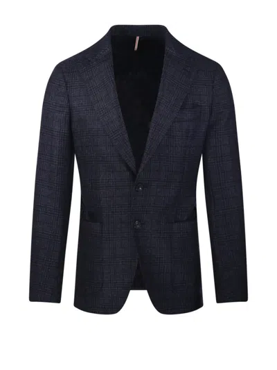 Two-button Blazer With Subtle Checkered Pattern In Blue
