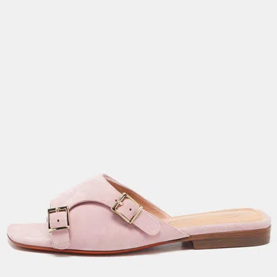 Pre-owned Pink Suede Double Buckle Flat Sandals Size 35