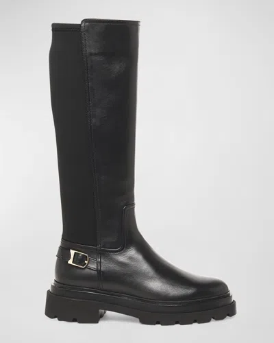 Suede Buckle Lug-sole Ankle Boots In Beige