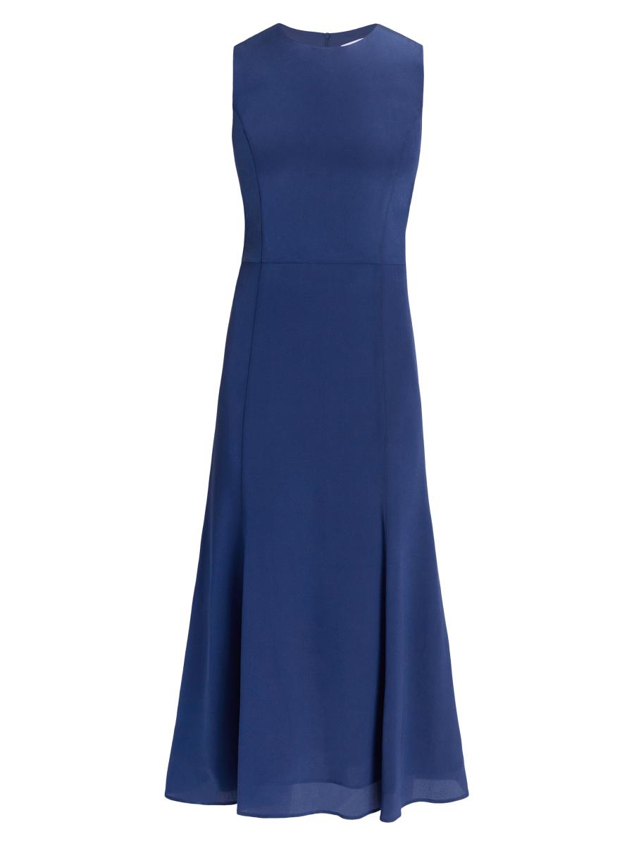 Women's Silk Crêpe De Chine Fit & Flare Midi-dress In Blue
