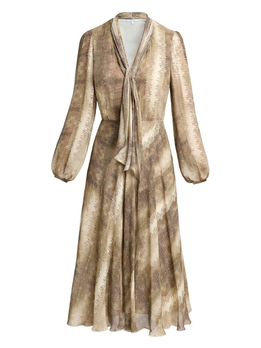 Women's Jenn Printed Tie-neck Midi-dress In Sand