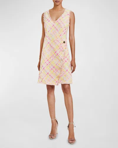 Melania Fringe-trim Tweed Mini Dress In Sand