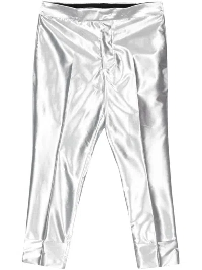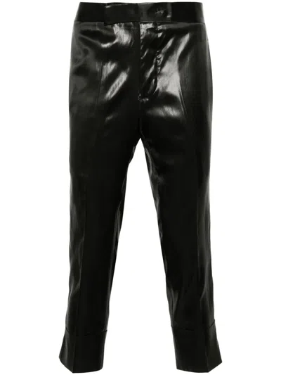 Satin Trousers With Belt Loops And Cuffed Hem In Black