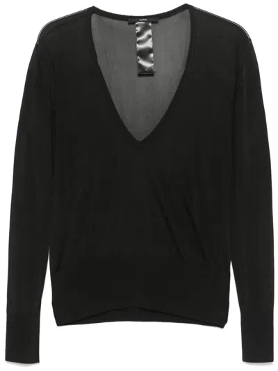 Viscose Crepe De Chine V Neck Sweater In Black