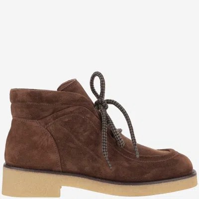 系带绒面皮及踝靴