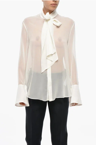 Tie Neck Georgette Silk Chiffon Blouse In White