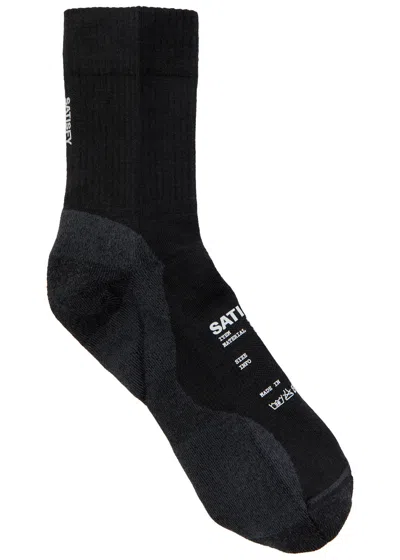 Melange-knit Merino-blend Socks In Black