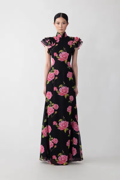 Jackson Asymmetric Jacquard Column Maxi Dress In Blue