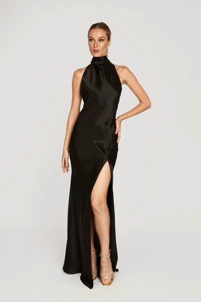 Penelope Backless Satin Gown In Black
