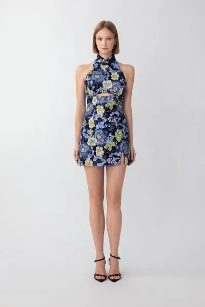 Jackson Asymmetric Jacquard Column Maxi Dress In Blue