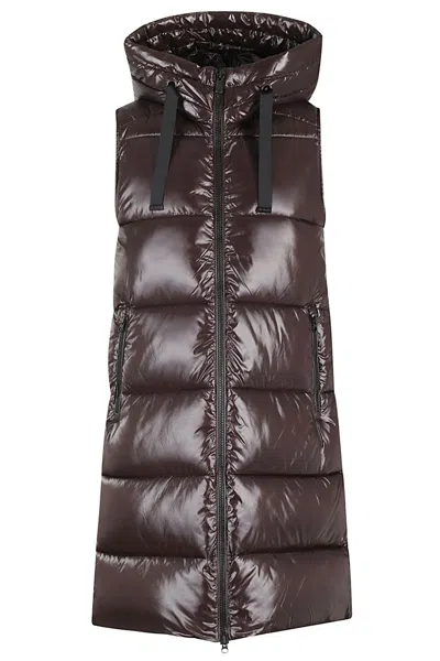 Sleeveless Padded Vest With Shearling Trim And Hood In Neutral