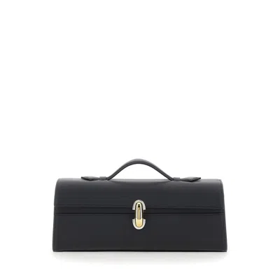 Simmetry Black Slim Handbag With One Top Handle And Front Twist-lock Closure In Leather Woma