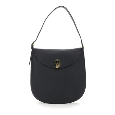 Tondo Black Shoulder Bag With Adjustable Shoulder Strap And Logo Plaque On The Front In Leat