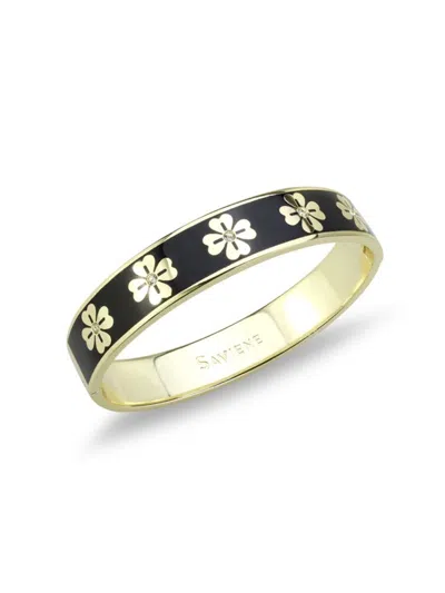Women's 18k Goldplated, Enamel & Crystal Clover Bangle Bracelet In Brass
