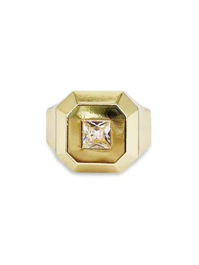 Women's Goldtone Stainless Steel Cubic Zirconia Signet Ring In Neutral