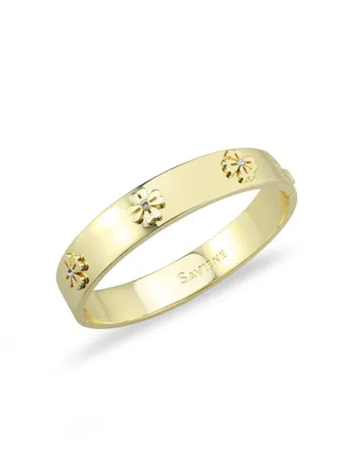 Women's 18k Goldplated & Cubic Zirconia Clover Bangle Bracelet In Brass